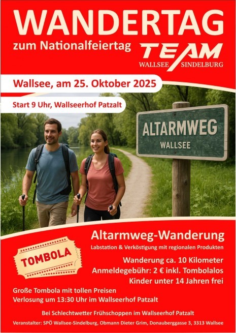 Wanderung um den Donau-Altarmweg mit Labstation - Start um 09:00 Uhr im Wallseerhof Patzalt - Ziel mit Tombola auch im Wallseerhof Patzalt. Genauere Infos folgen noch.