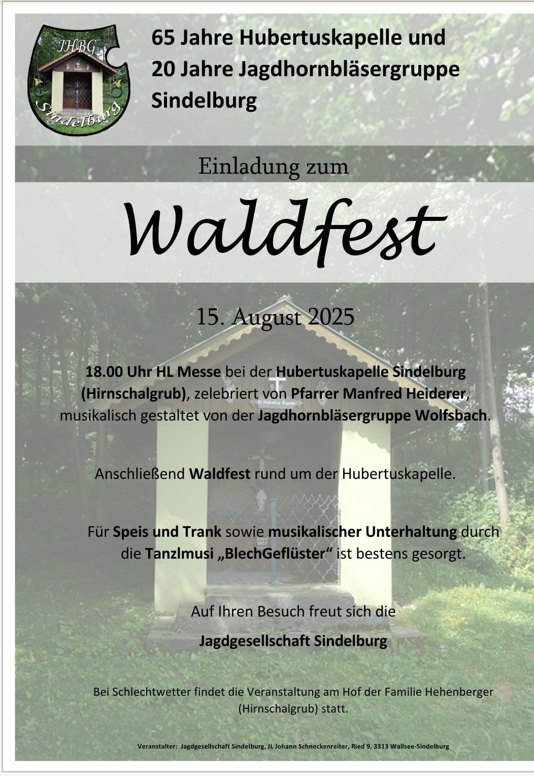 Jubiläumsfestmesse um 18.00 Uhr mit anschließenden Waldfest