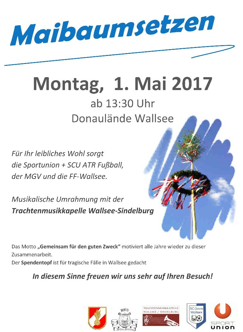 Für Ihr leibliches Wohl sorgt die Sportunion + SCU ATR Fußball, Männdergesangsverein und die FF Wallsee. Musikalische Umrahmung mit der Trachtenmusikkapelle Wallsee-Sindelburg.